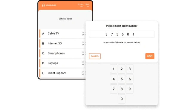 To pick up an order, use a ticket dispenser. Customers will fill out a form notifying the business that they have arrived using their order number. They can now go on to the following stage in order to retrieve the object.