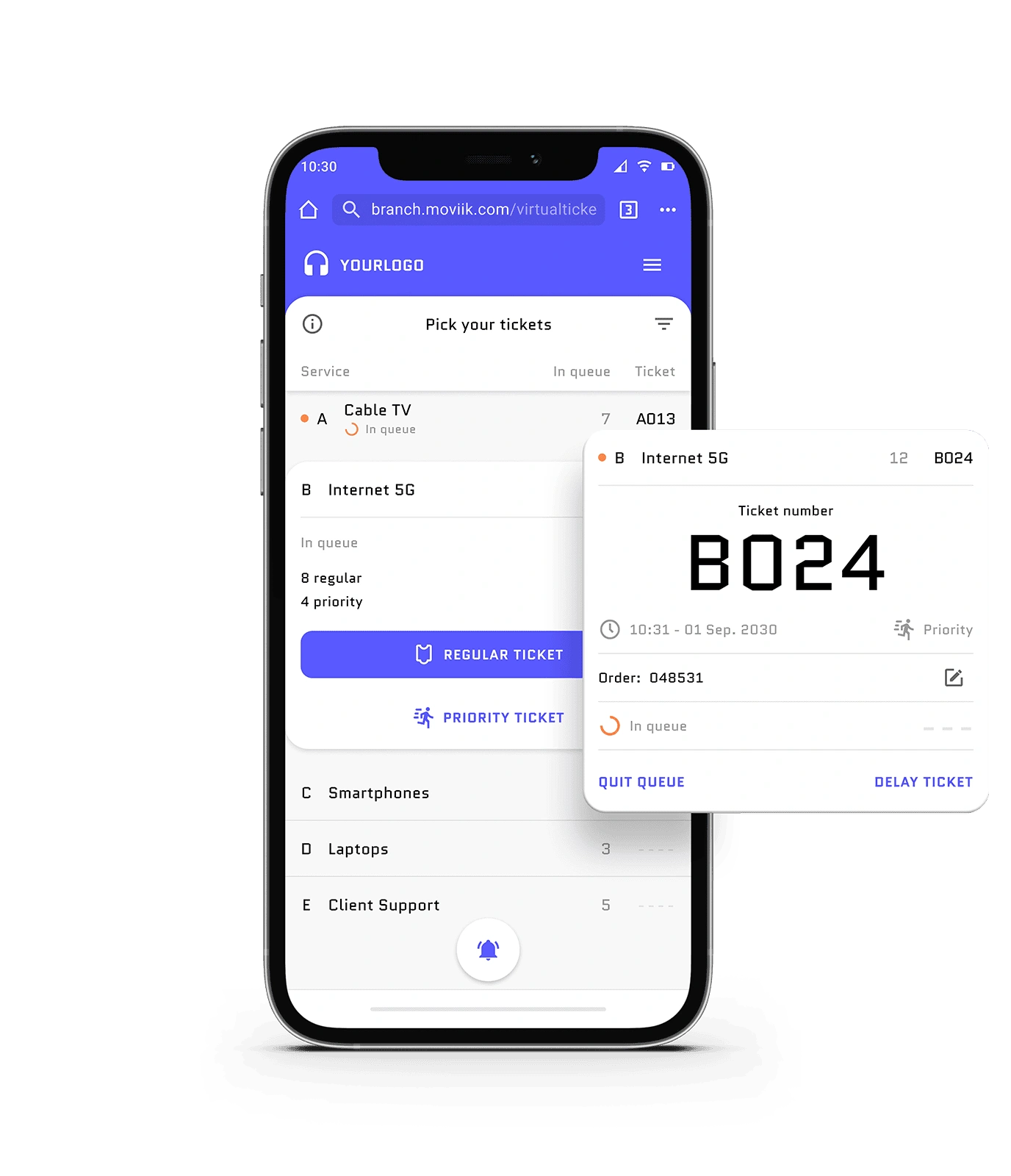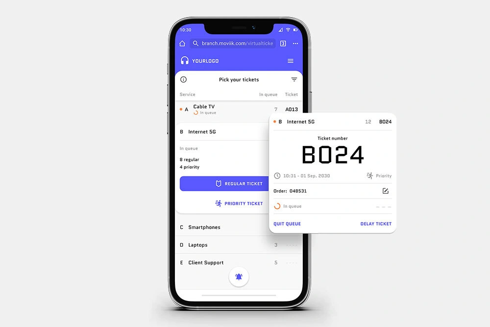 A more intelligent digital ticketing experience: Moviik’s cloud platform allows your customers to control their time, join the queue from their phone, and check their position in real time.